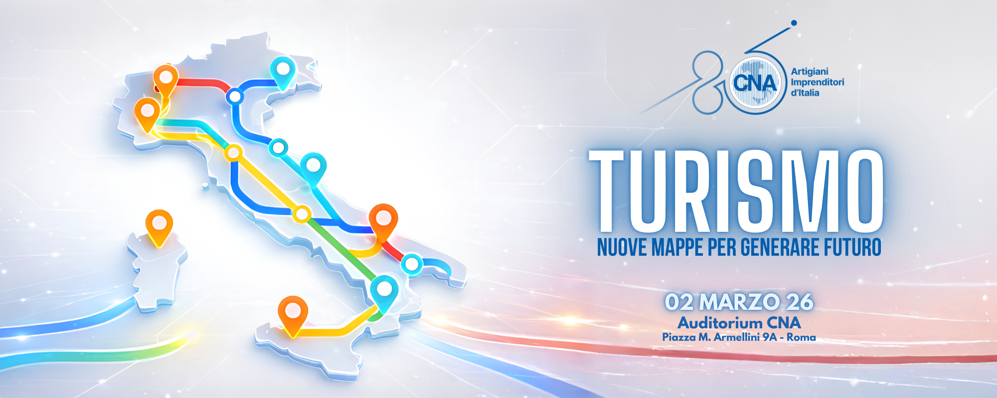 L’evento “Turismo: Nuove mappe per generare futuro” rappresenta un momento di confronto e visione condivisa che riunisce istituzioni, rappresentanti CNA e protagonisti del settore per tracciare le nuove direttrici strategiche del turismo e del commercio per il 2026.